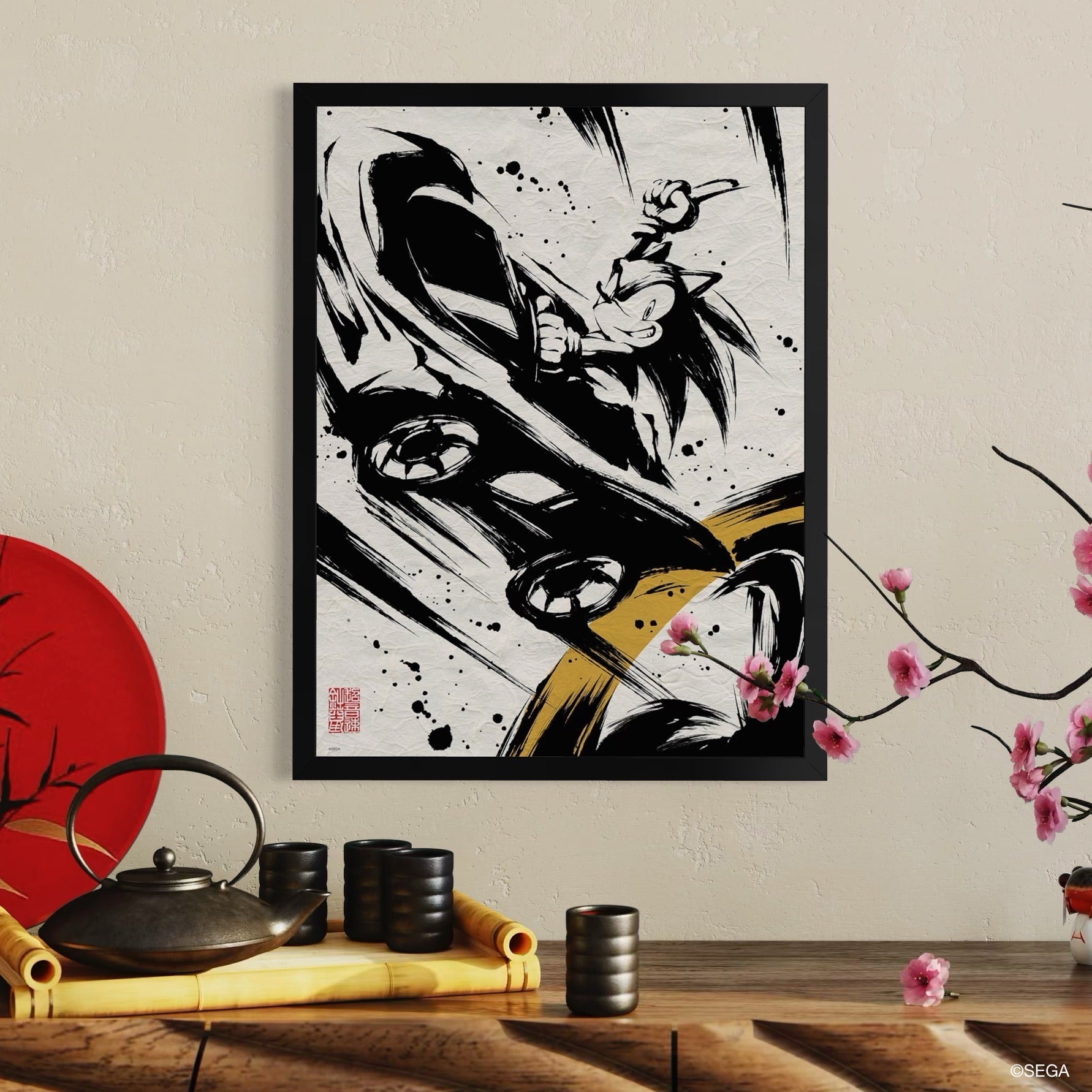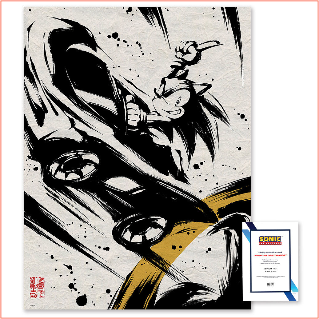 We are huge fans of artist Yui Karasuno, and are truly honoured to be reproducing her black brush artworks for Sonic fans. Karasuno-san's reproductions have sold out in record time and we're sure that will be the case again. Her incredible, dynamic and stylish piece for 'Sonic Racing: CrossWorlds' is Exclusive to Moor-Art Gallery.